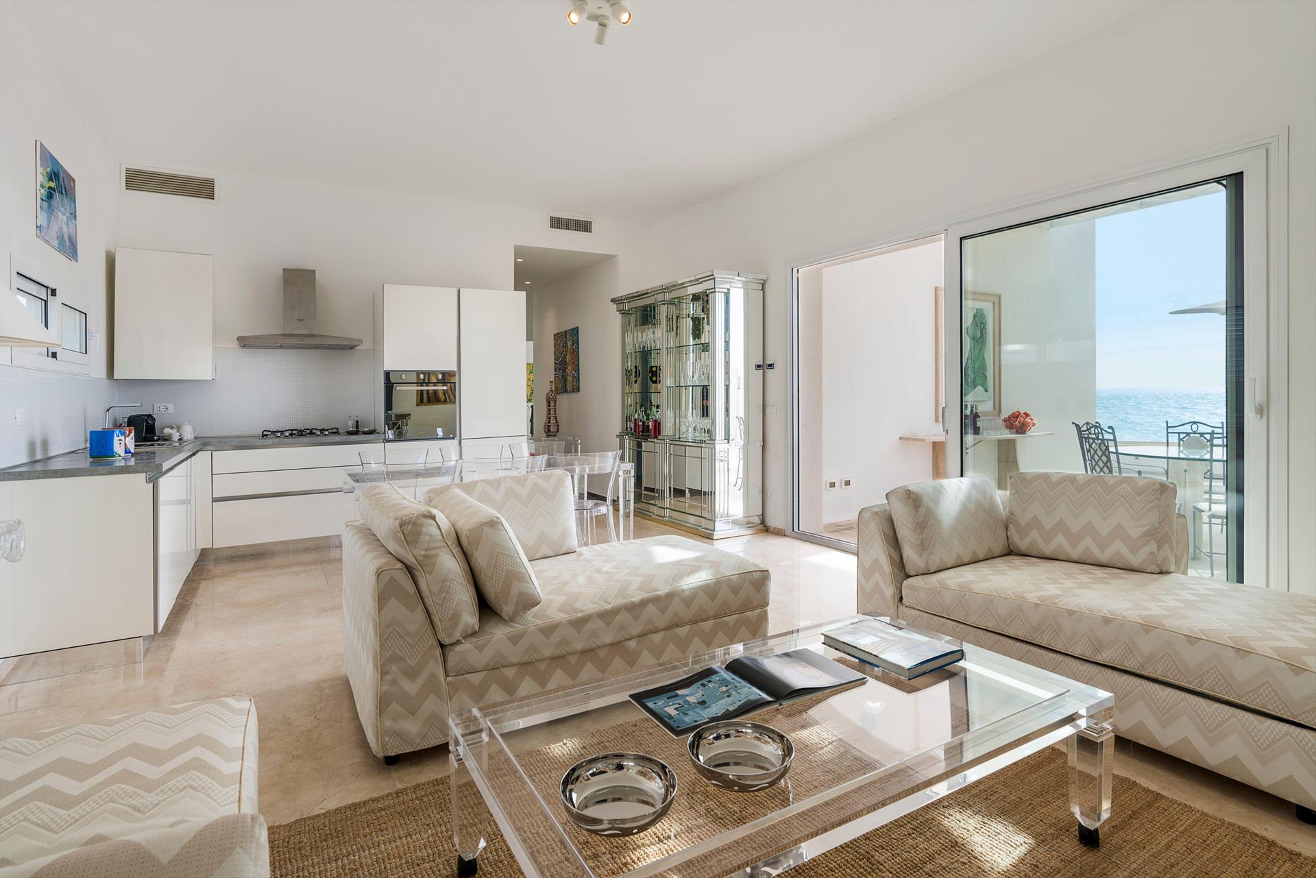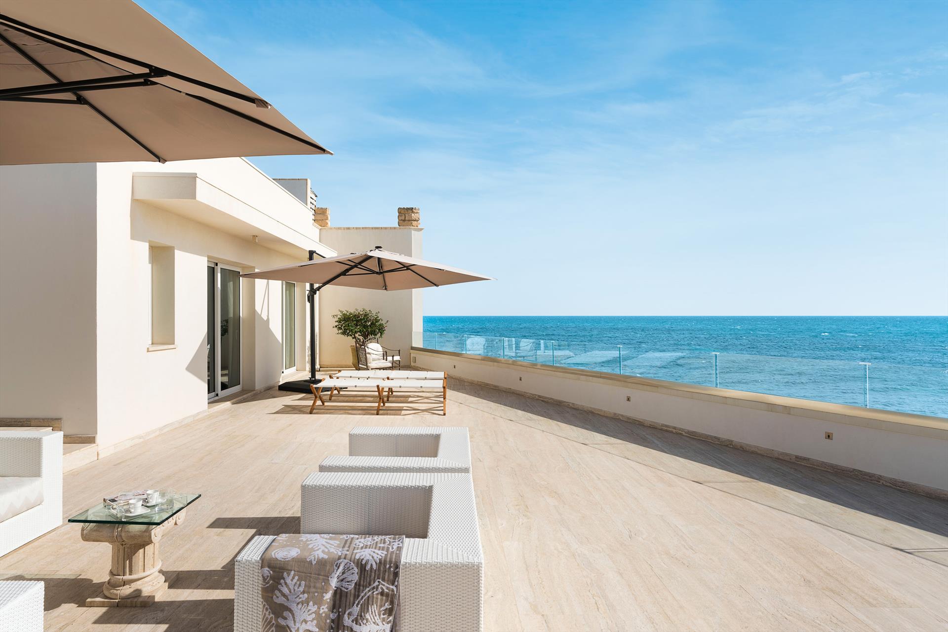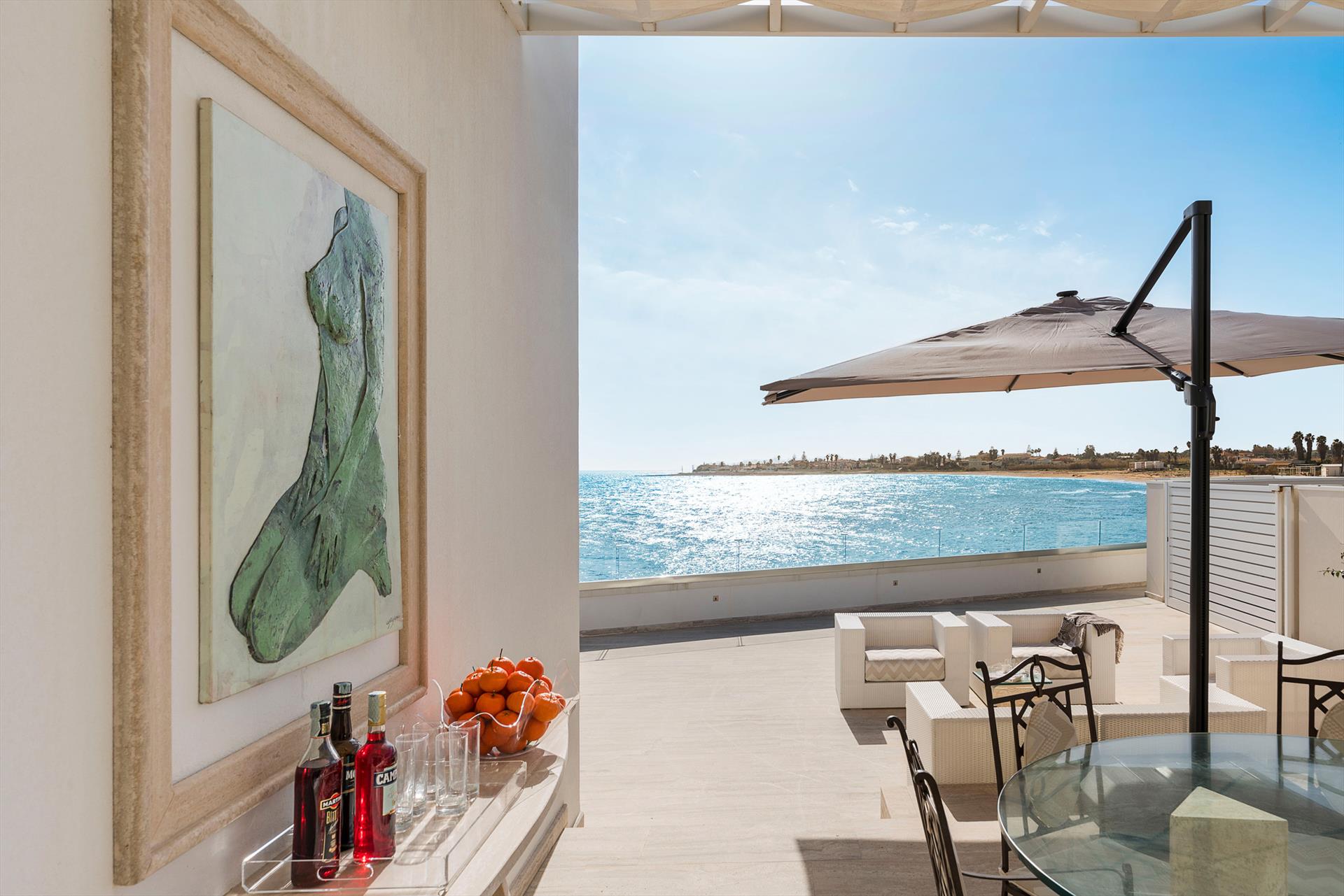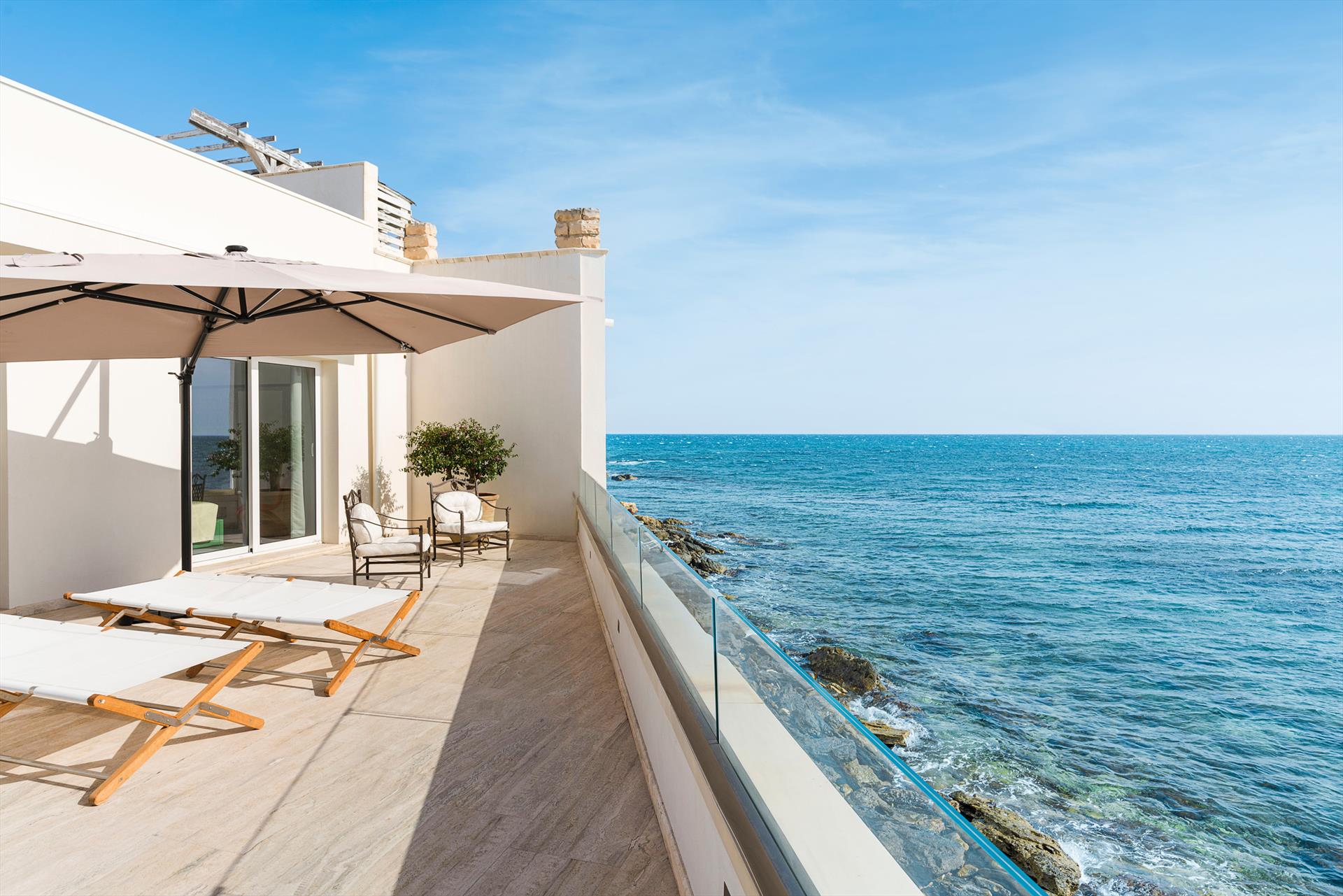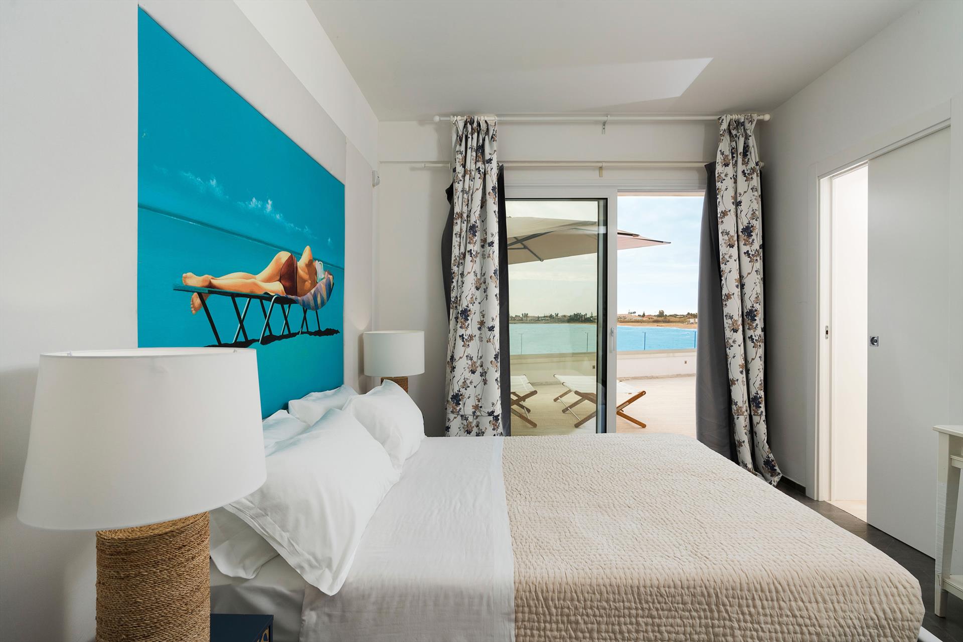 Exclusive seafront villa perched above the sea in Avola, in the surroundings of Syracuse. Villa Marea enjoys private access to the rocky shoreline and the sea, and is just over 100 metres from a beautiful sandy beach that can be easily reached on foot. The recently built villa features a solarium with a hot tub and a spacious terrace furnished with garden furniture, offering enchanting views over the Avola coastline. The welcoming and well-designed interiors include a bright open-plan living room and kitchen, two double bedrooms with en-suite bathrooms, a twin bedroom, and a third bathroom, also fitted with a shower. The villa is equipped with all modern comforts, including air conditioning and heating (in all rooms), Wi-Fi internet, two colour TVs, washing machine, dishwasher, barbecue and outdoor shower.