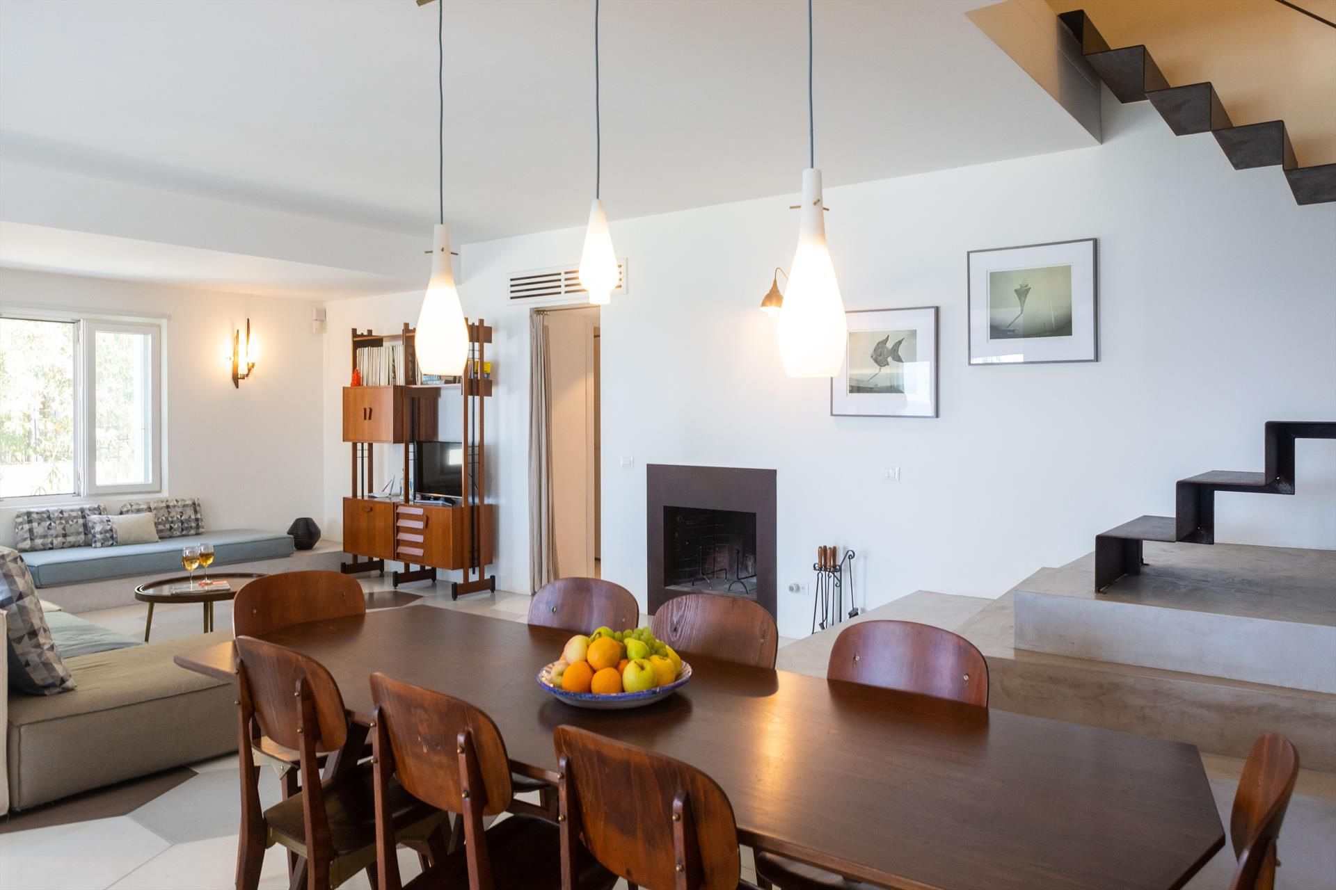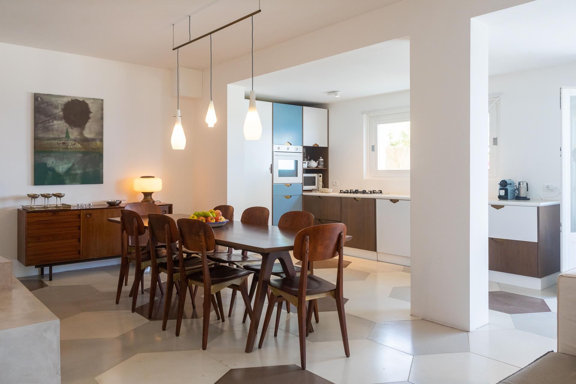 The main house (200 m²) extends over two floors. The interiors are spacious, contemporary, functional and stylish. From the living area there is a view of the 60m² terrace, which is the heart of the villa.