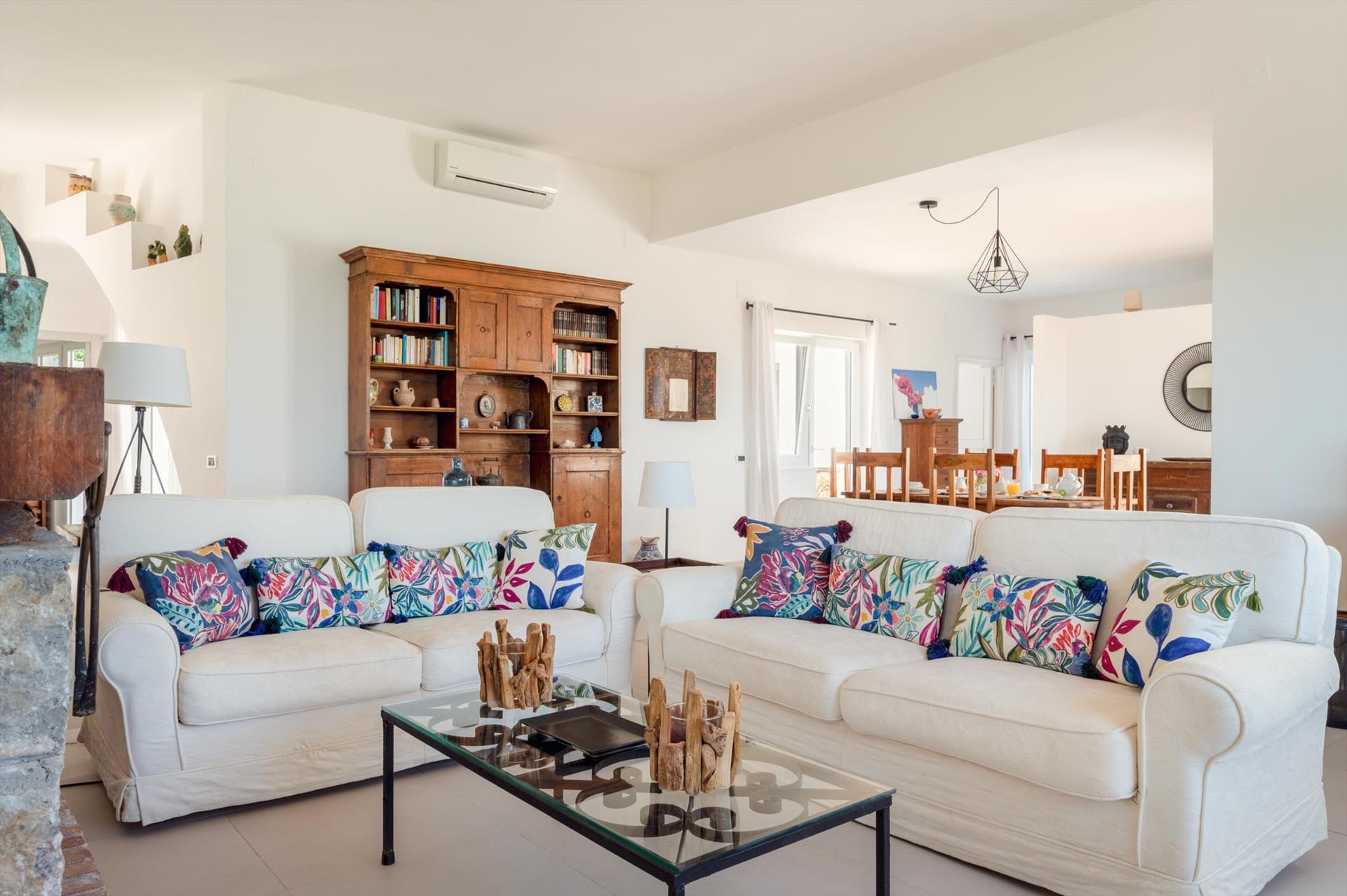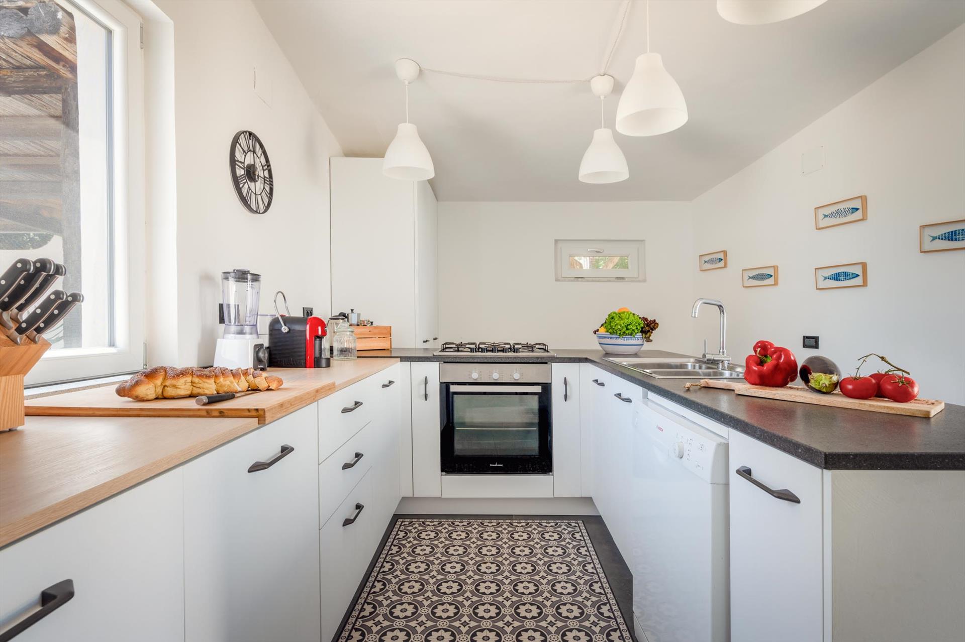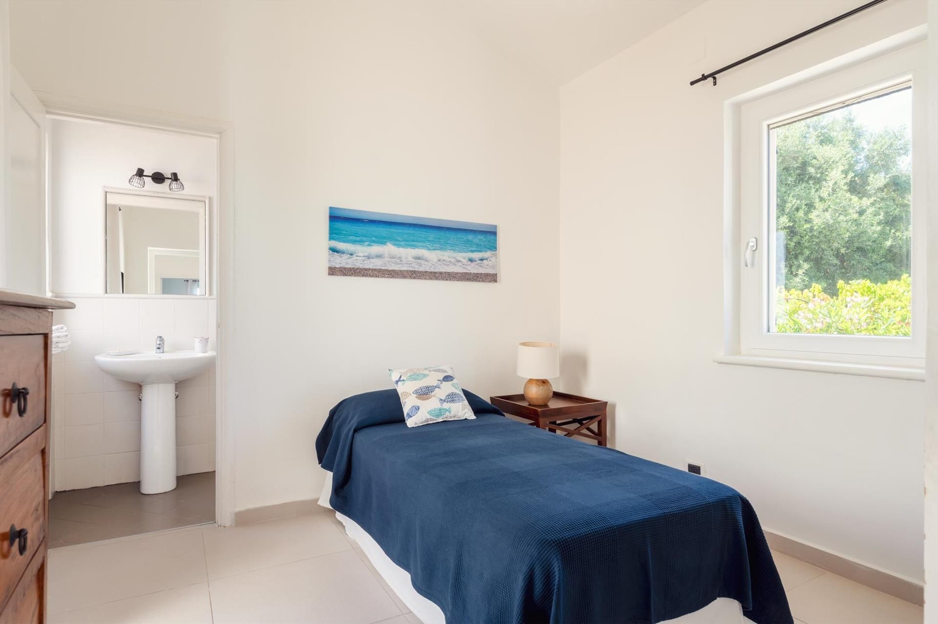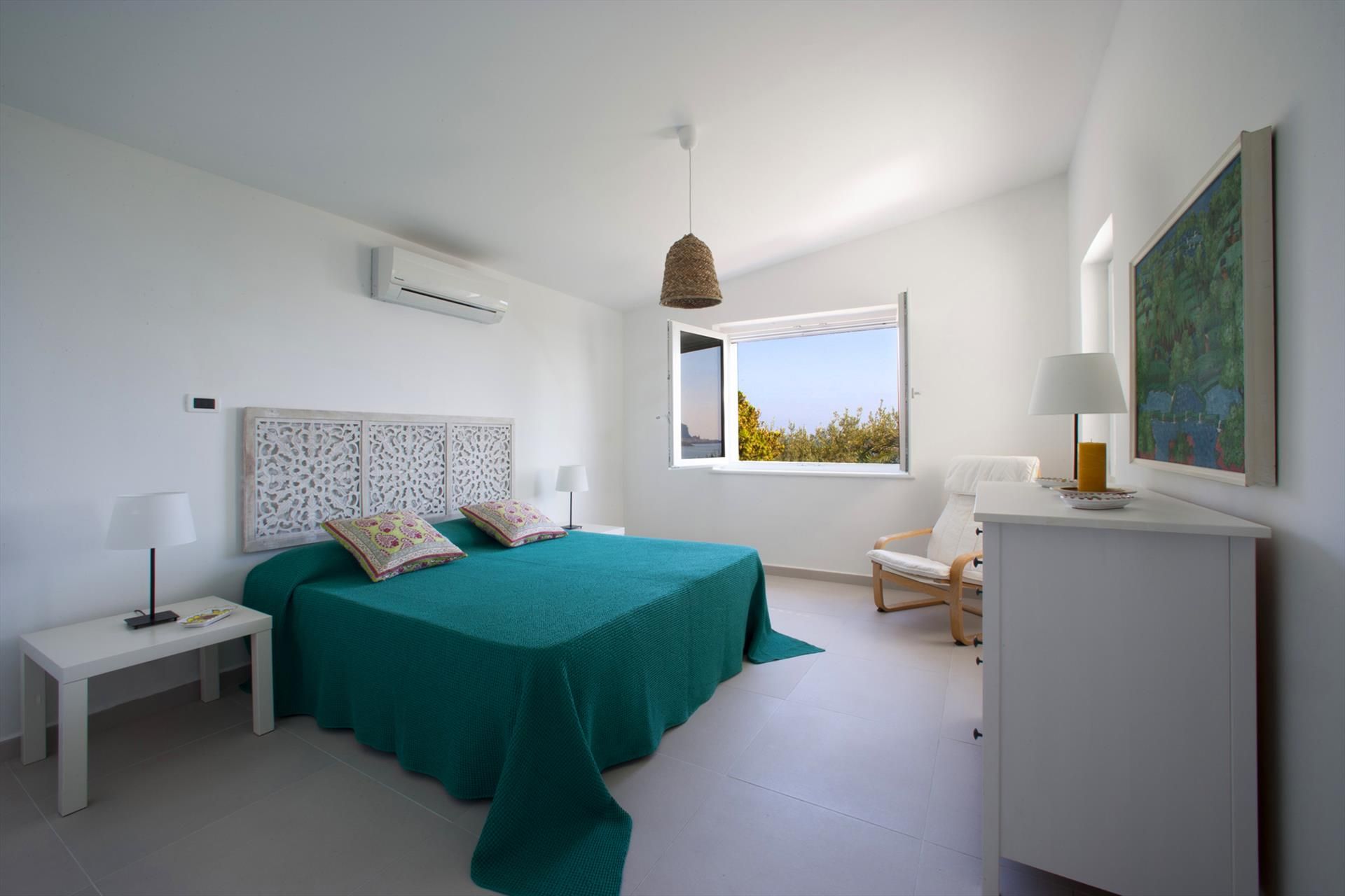 The villa is surrounded by an extensive Mediterranean garden with palm trees, olive trees, oleander bushes, bougainvillea and other typical Mediterranean plants. The garden is characterized by a magnificent, recently renovated area. Low dry-stone walls surround this area of the garden where you can relax with breathtaking views and enjoy an aperitif or just relax. From the garden you can access the small rocky beach below through a private gate.