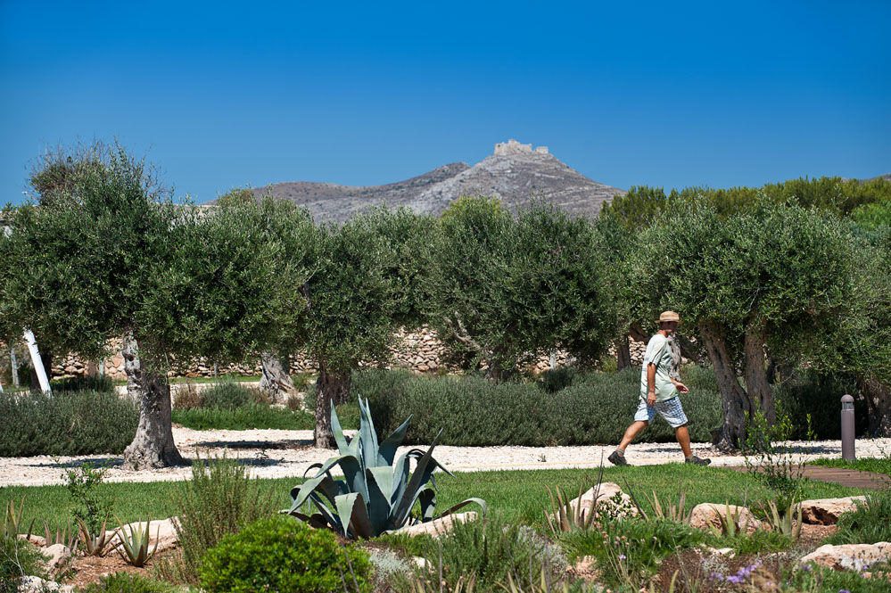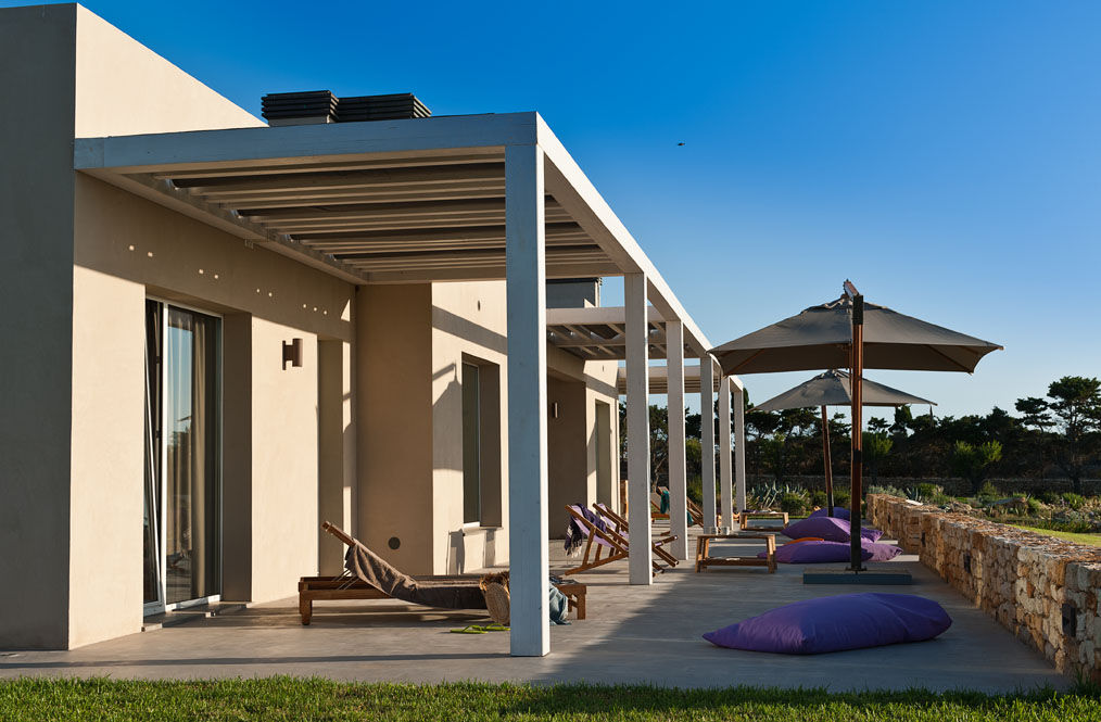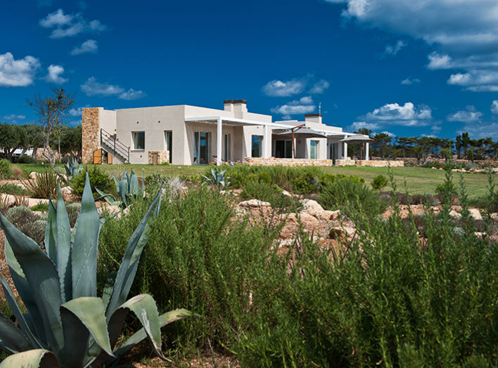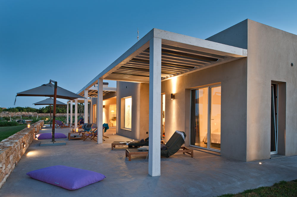 Suite Aegusana is a Luxury pool villa on the beautiful Aegadian island of Favignana, only 20 minutes by hydrofoil from Trapani. The locations is outstanding, only a few minutes from the famous turquoise waters of the islands two most beautiful bays Cala Azzurra and the mythical Cala Rossa. The villa is nestled in a lush Mediterranean garden and also offers a beautiful large lawn, integrated lovingly into the surrounding landscape. Built with sustainable living in mind and environmentally friendly constructions methods and materials, Suite Aegusana features a completely unique design which was inspired by traditional architectural elements of the island.