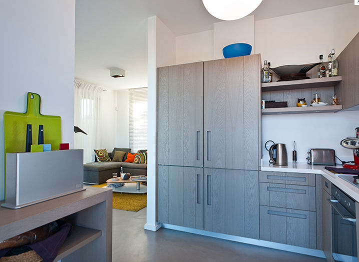 - kitchen with gas hob, electric oven, dishwasher, refrigerator-freezer, coffee machine, electric kettle, toaster and juicer