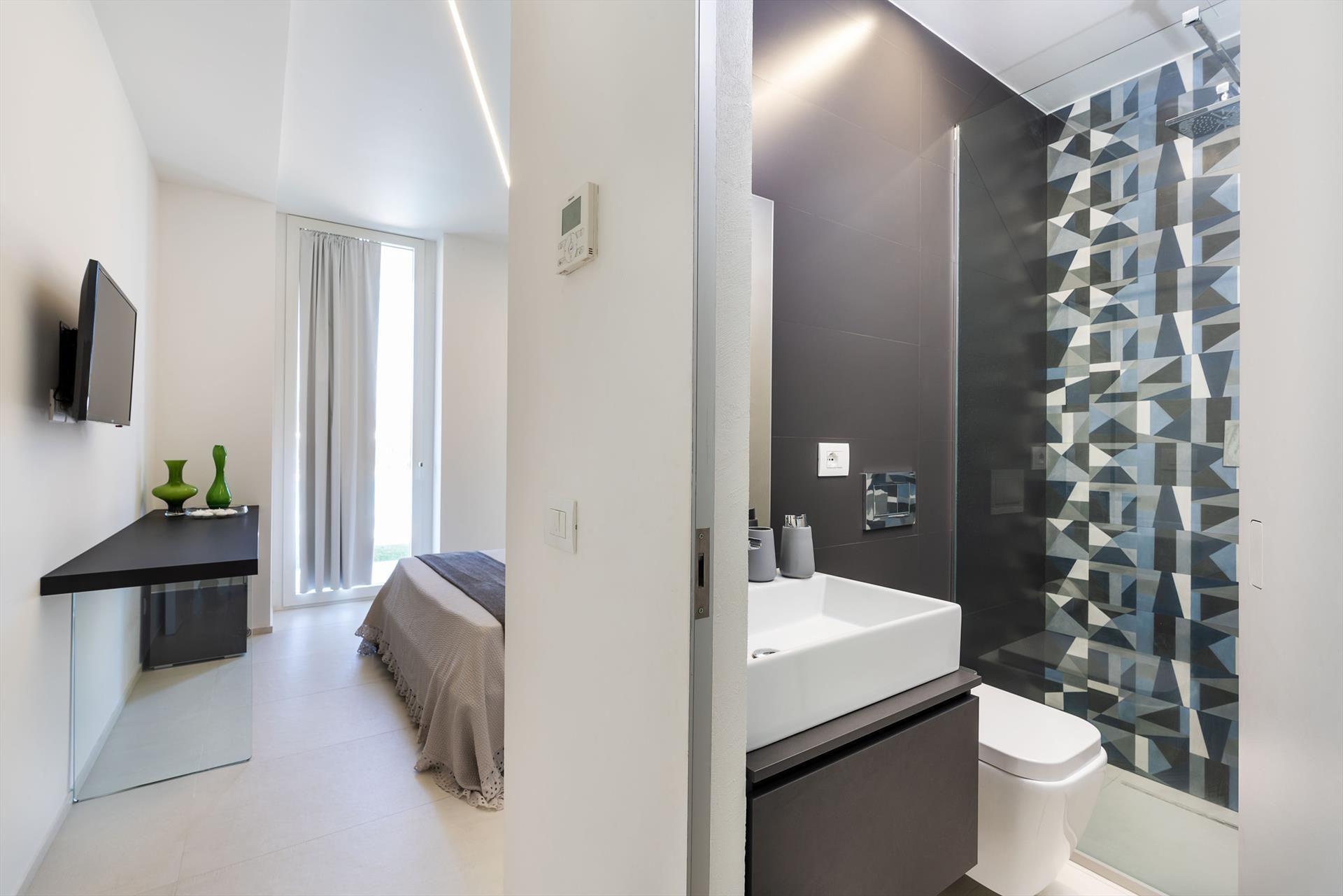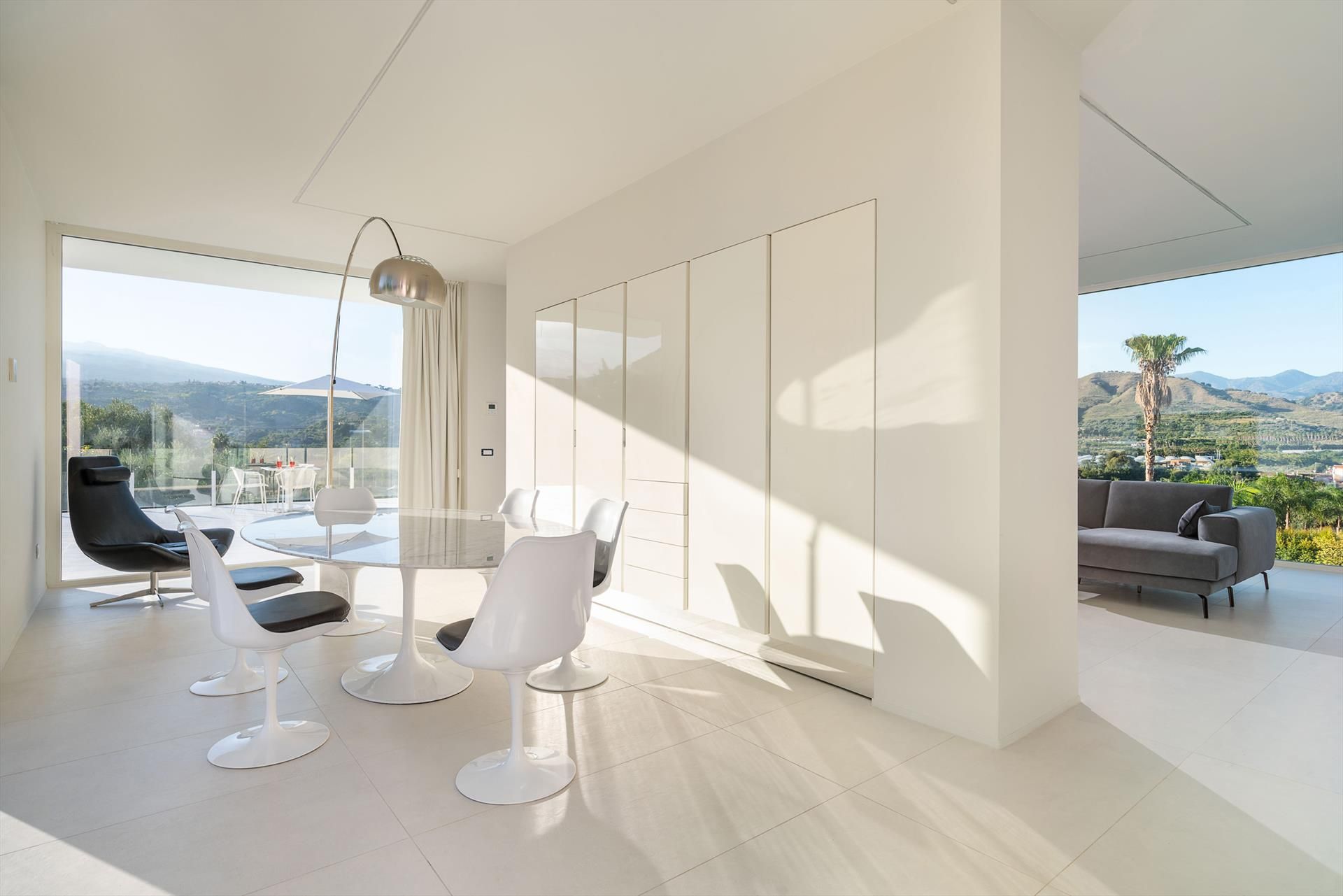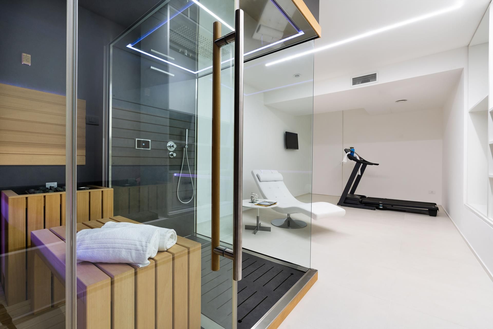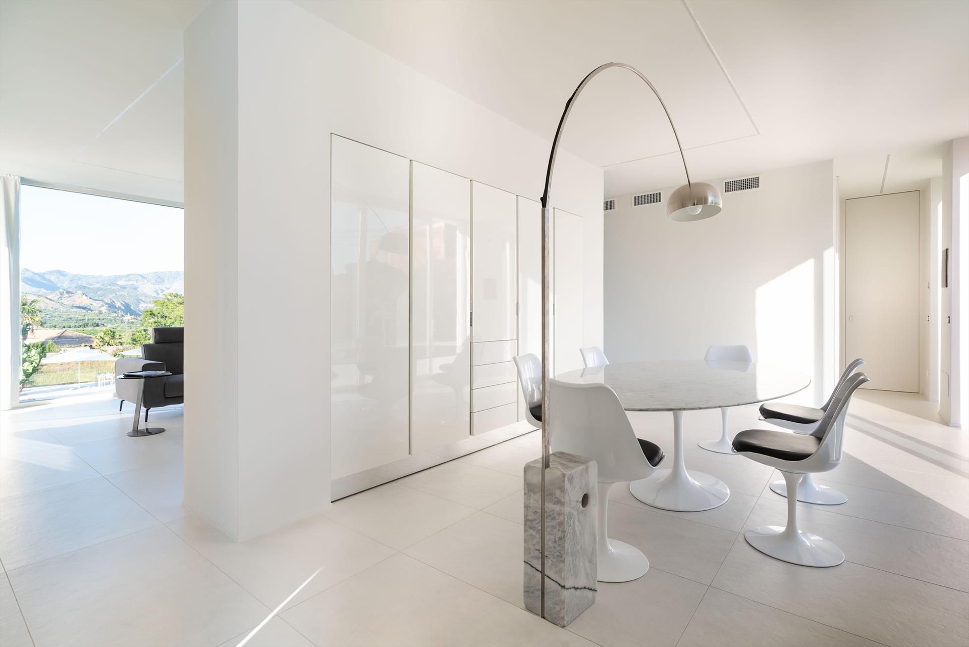 The villa also has a wellness area with sauna and treadmill and numerous amenities, such as A/C, Wi-Fi internet, 8 TVs, satellite receiver, dryer, 2 washing machines, 2 dishwashers, safe and barbecue. From villa Giardini, the charming historic centre of Taormina and the sea can be reached in a few minutes by car. Also nearby are the beaches of Fondachello and Giardini Naxos, Etna Park and the Alcantara gorges, the seaside villages of the Riviera dei Ciclopi, Catania and Syracuse.