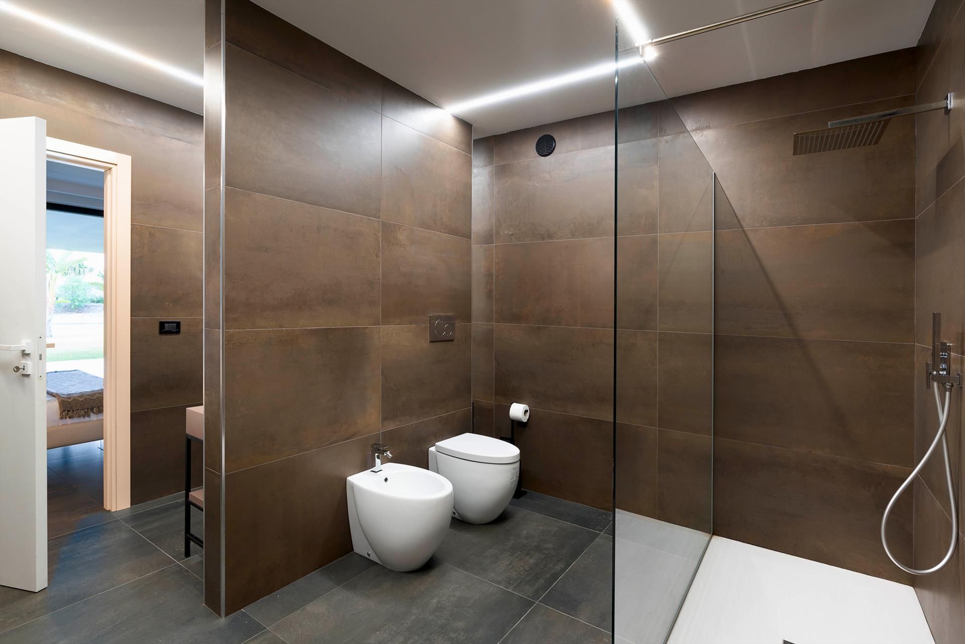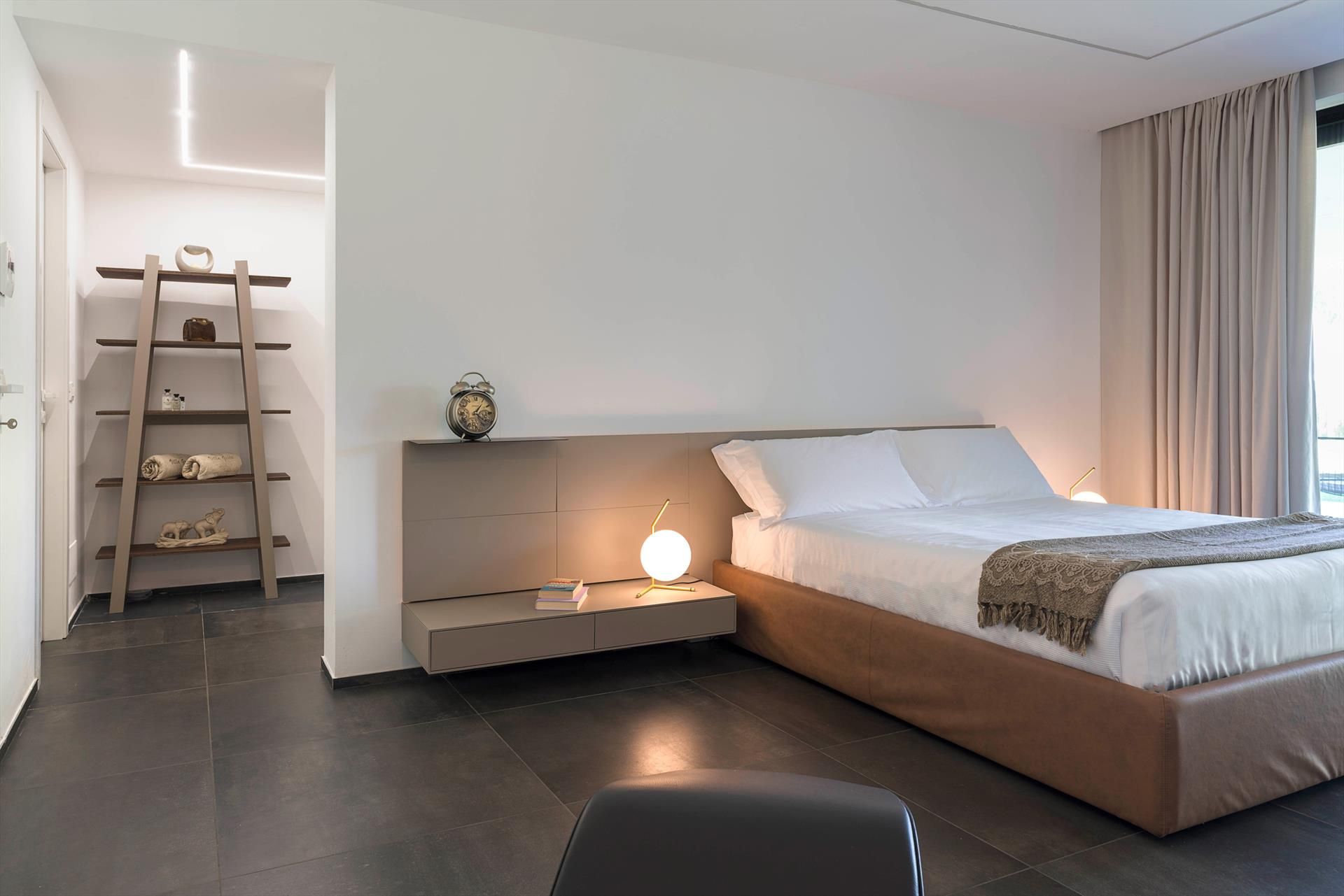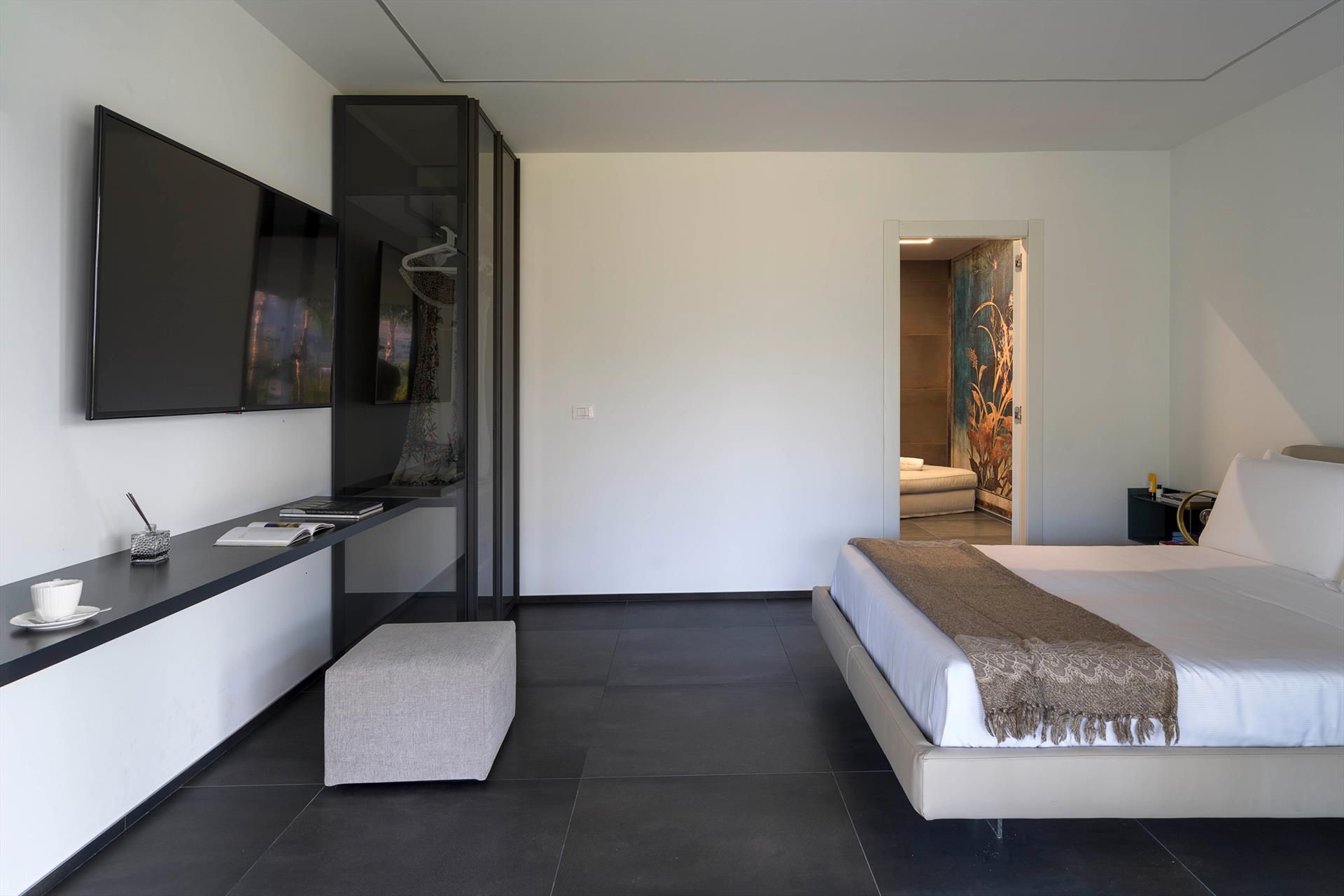 The main house - which is on two levels - has cosy, light-filled interiors that open onto the garden and the surrounding landscape through large floor-to-ceiling windows. The ground floor comprises a living area with kitchen, a luxurious master suite with an exposed whirlpool tub and private bathroom, two double bedrooms with en-suite bathrooms, and a fourth bathroom with shower. On the first floor, connected by an external staircase, there is a second living-dining room with kitchen, a double bedroom with en-suite bathroom, a twin bedroom and a service bathroom. While the annex accommodates two bedrooms with two bathrooms.