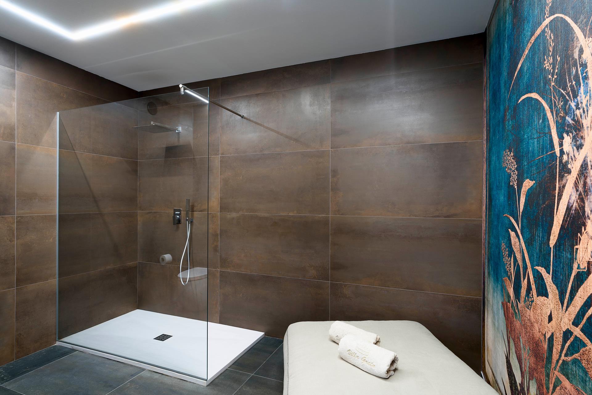 MANOR HOUSE Ground Floor: Large living area with lounge, dining room and kitchen, 1 bathroom with shower, laundry, 1 double bedroom with Jacuzzi and en-suite shower, 2 double bedrooms with en-suite shower, wellness area (sauna). First Floor (accessed from outside): living/dining room, kitchen, 1 double bedroom (king size bed) with en-suite shower, 1 twin bedroom, 1 bathroom (toilet-washbasin). ANNEX Ground floor: 2 double bedrooms (not communicating) with bathroom-shower. Patio with pergola, garden.