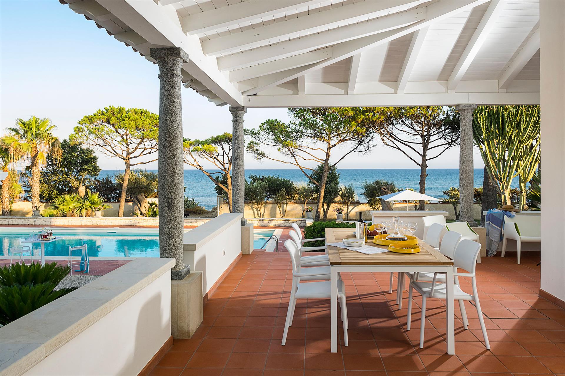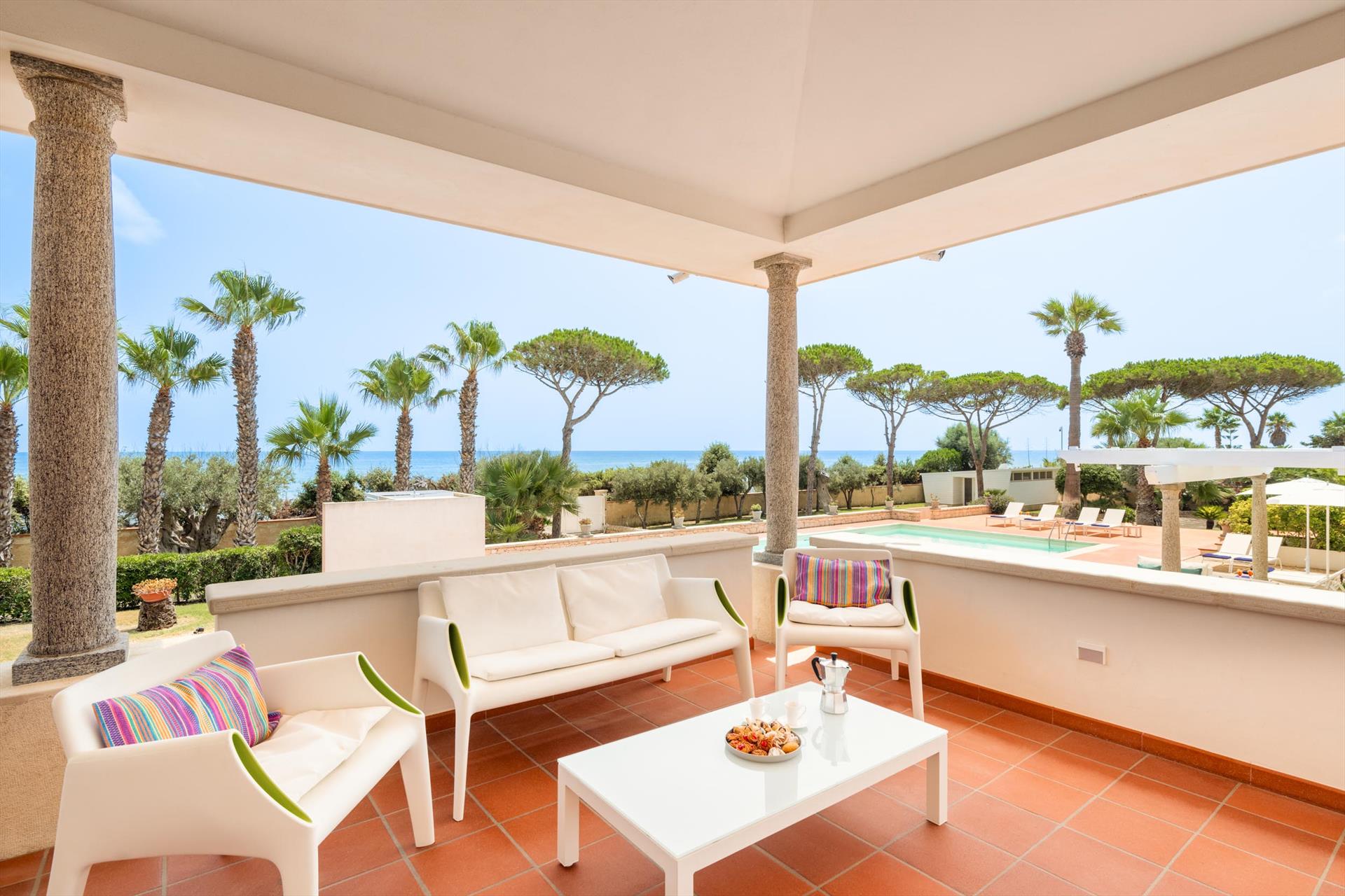 Villa La Palma is an elegant beach villa, with a handsome pool area, located directly adjacent to the sea and only minutes from the seaside town of Marina di Modica with its sandy beach, cafés, restaurants and shops. Mediterranean Pine trees line the luxurious garden area, which leads towards the sea, adding a majestic touch to the villa. A small gate leads from the garden area to a small path, which leads to rocky beach below. Villa La Palma has been lovingly restored and decorated with much attention to detail and offers a modern interior throughout. The beach town of Marina di Modica can easily be reached by car within a few minutes, or via the sandy beach, walking along the coastal footpath. The villa and location provide the perfect setting, for families and groups alike to holiday in style, whilst being able to visit the famous sights of the South including the Baroque cities of Modica, Ragusa Ibla and Scicli, the plentiful sandy beaches along the coast, good restaurants and the filming location of the famous 'Montalbano Mysteries' in Punta Secca.