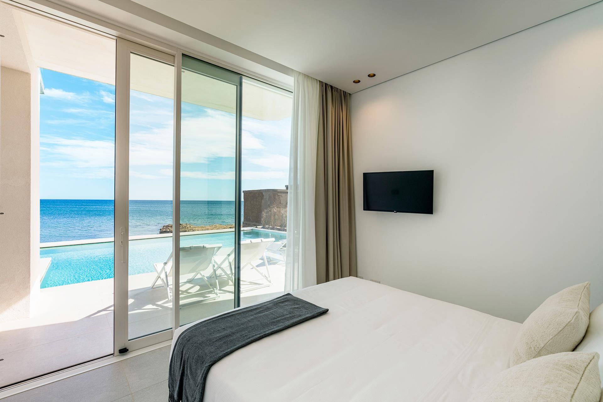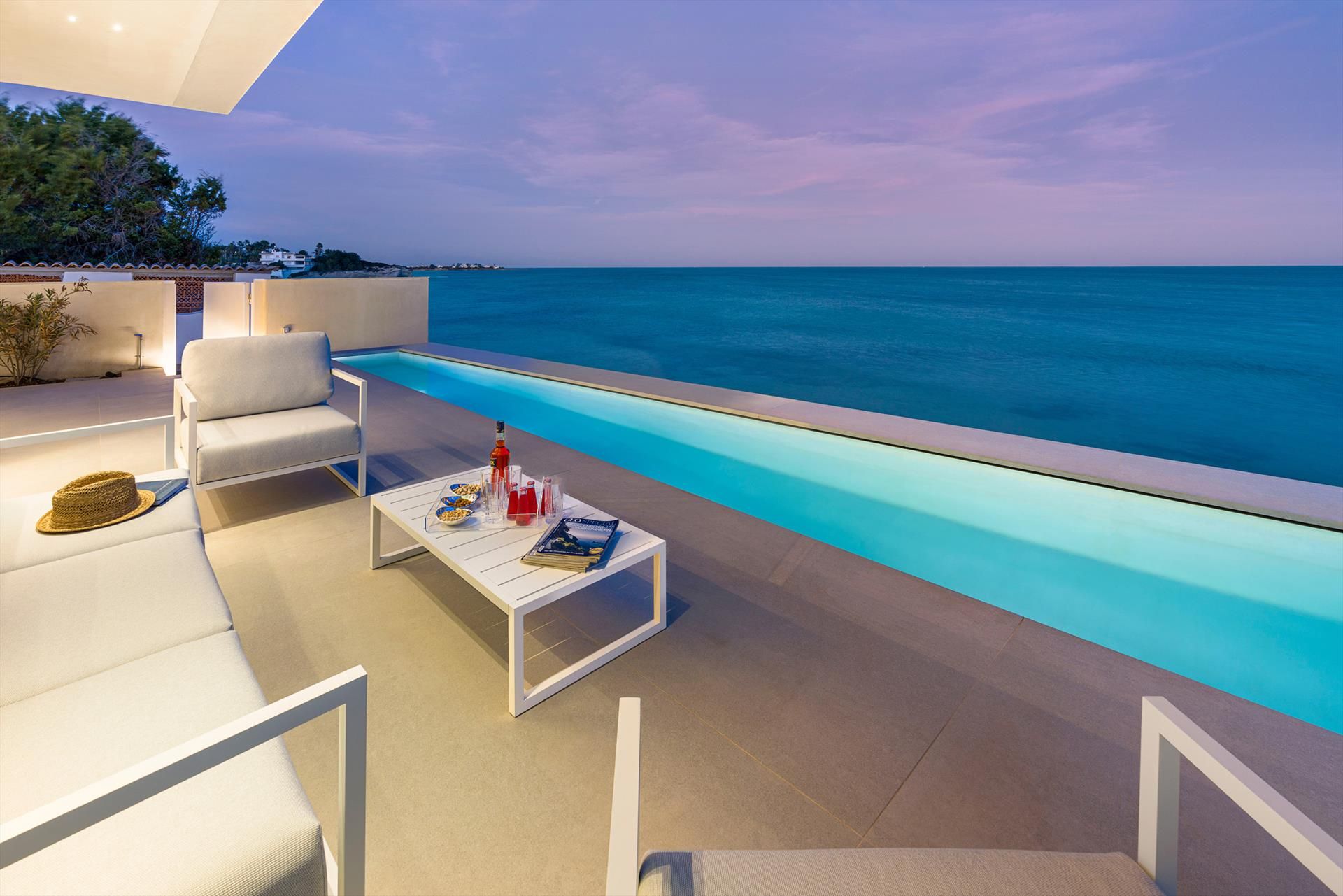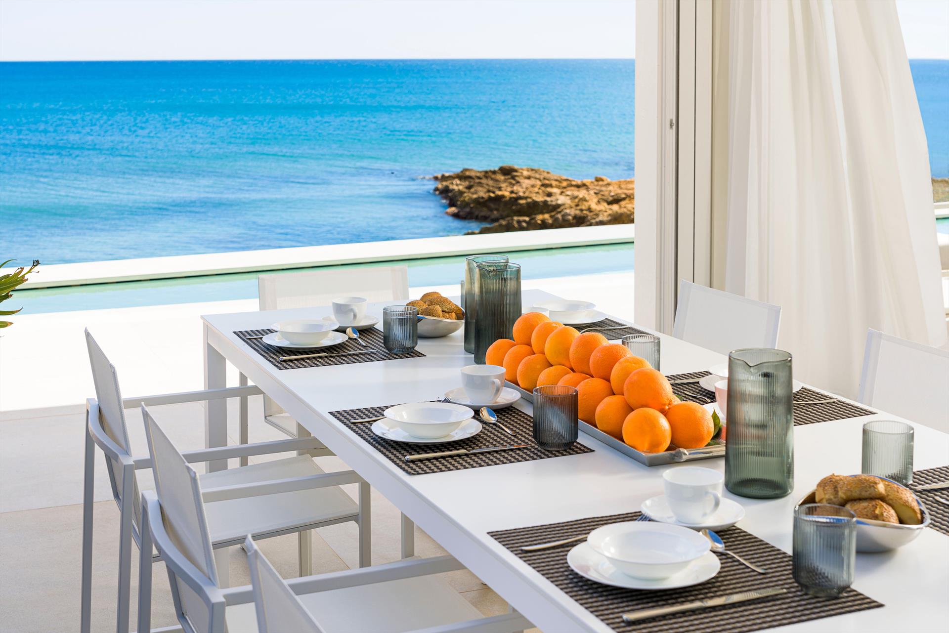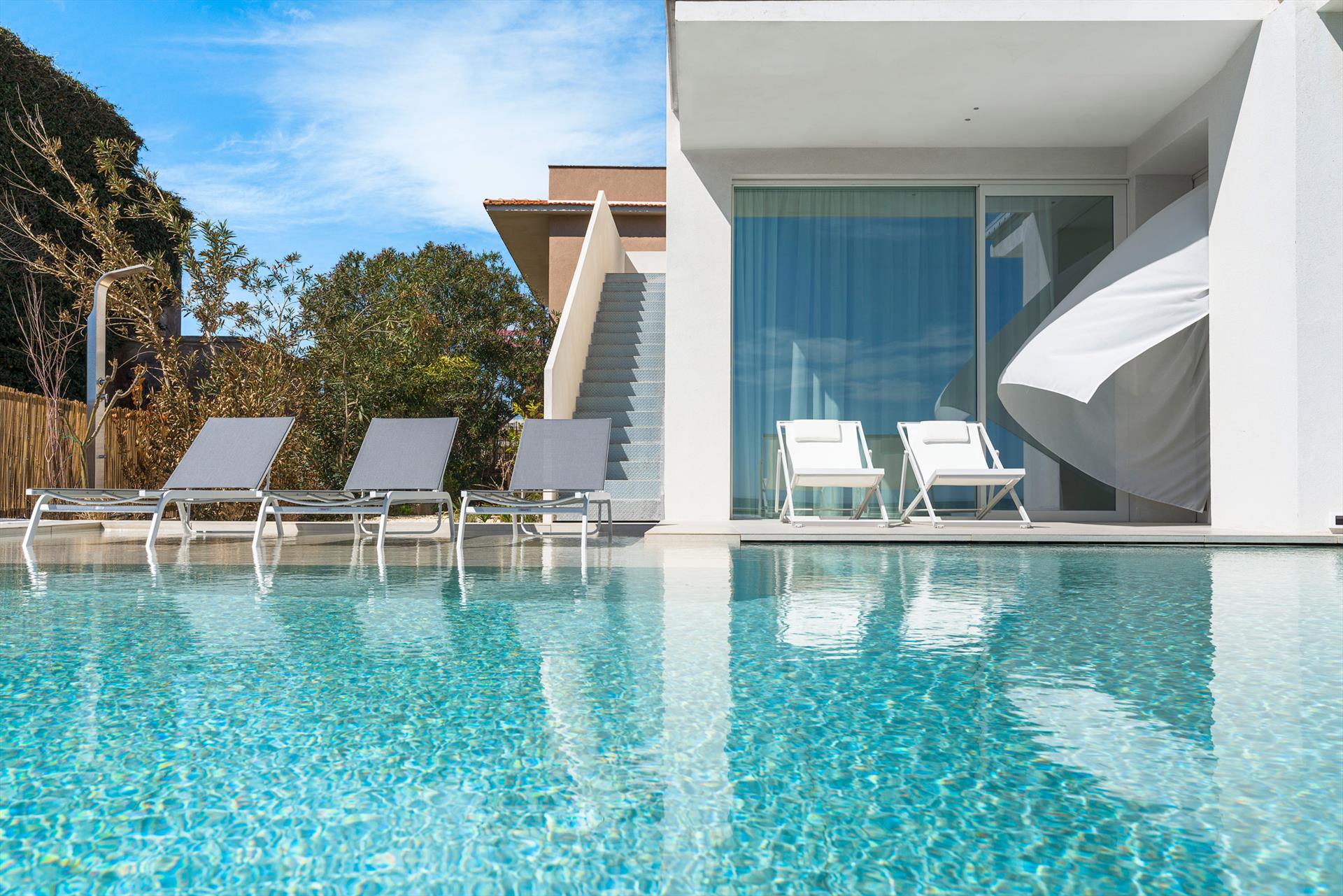 Villa Meraviglia is a modern and exclusive seafront property in Marina di Noto. Beautifully located along the southeast coast of Sicily, the villa is just a few kilometres from the historic centre of Noto and the Vendicari nature reserve. Surrounded by a small garden and spacious terraces, Villa Meraviglia features an exclusive salt-purified and heated swimming pool.