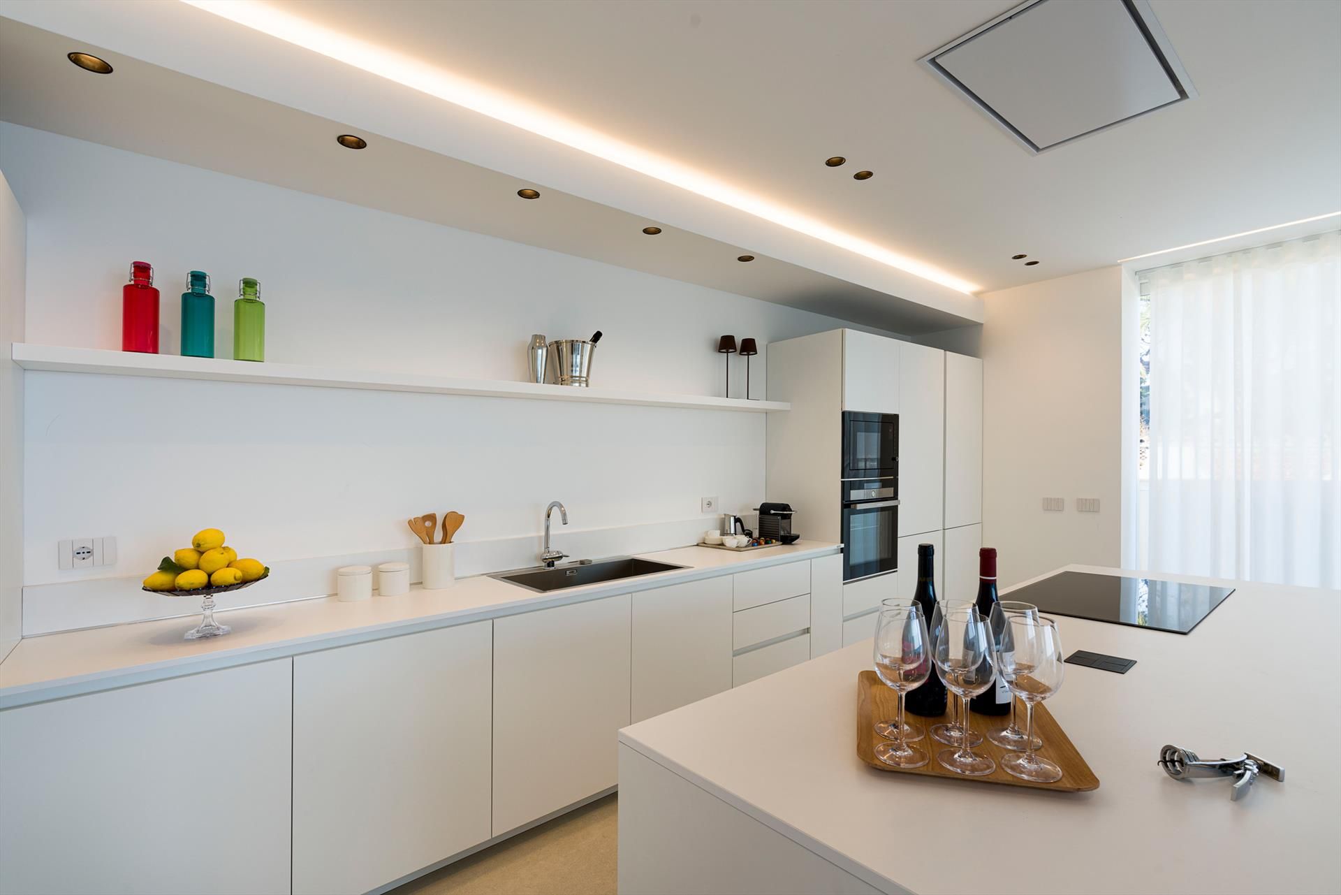- Internal equipment: Black coffee percolator, Deepfreezer, Dishwasher, Electric oven, Espresso machine, Freezer, 2 Fridges, 4 Hairdryers, Highchair, 5 Hob: induction burners, Iron, Kettle, Microwave, Mixer, 5 Smart TV, Toaster, Washer dryer