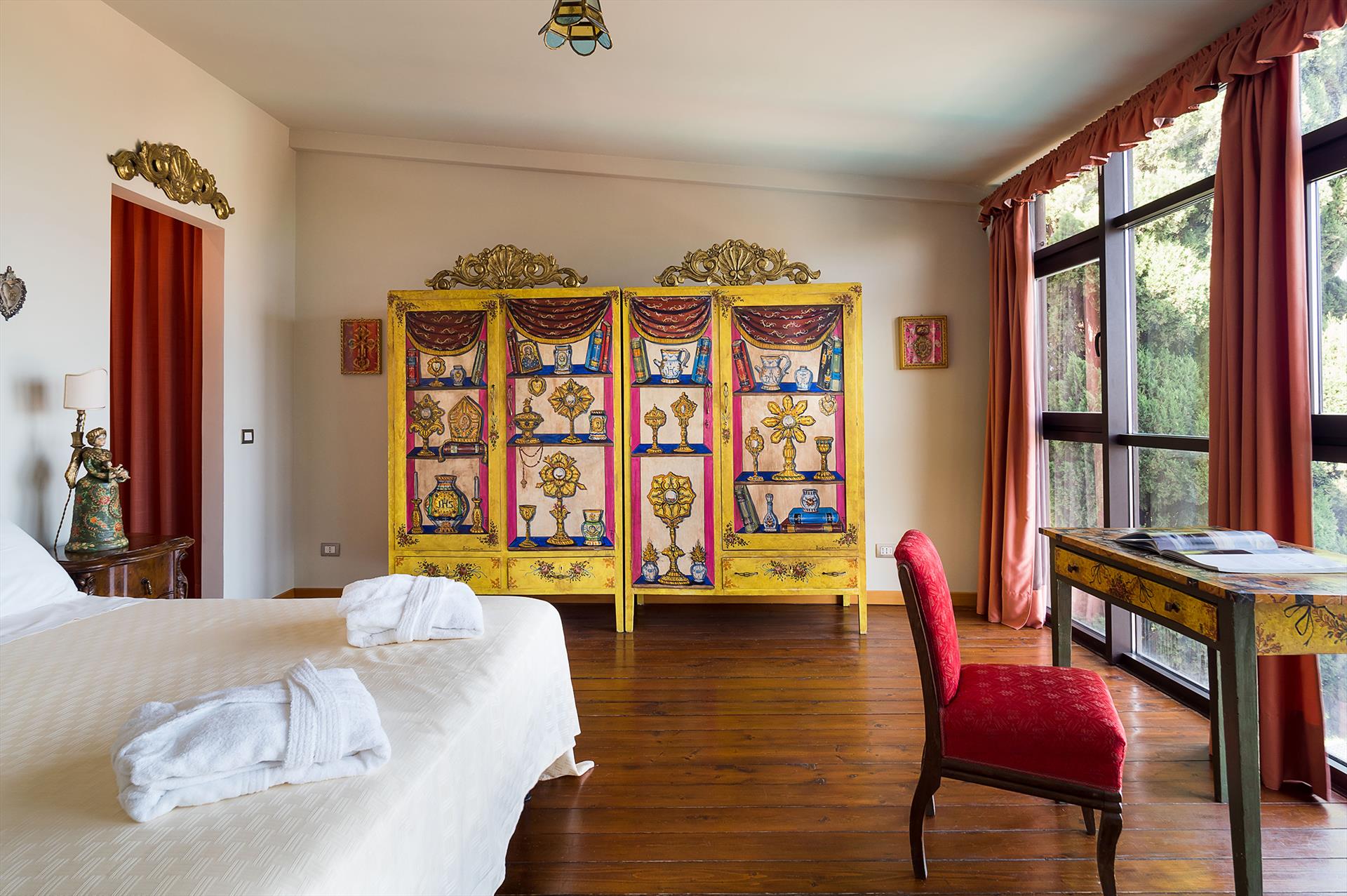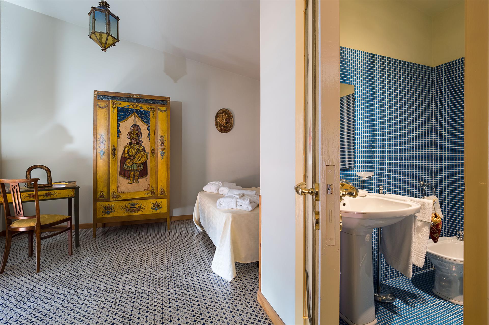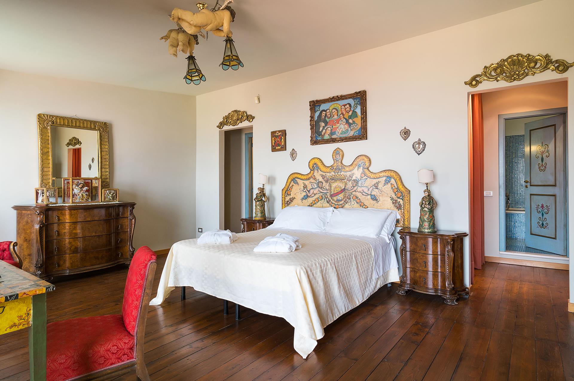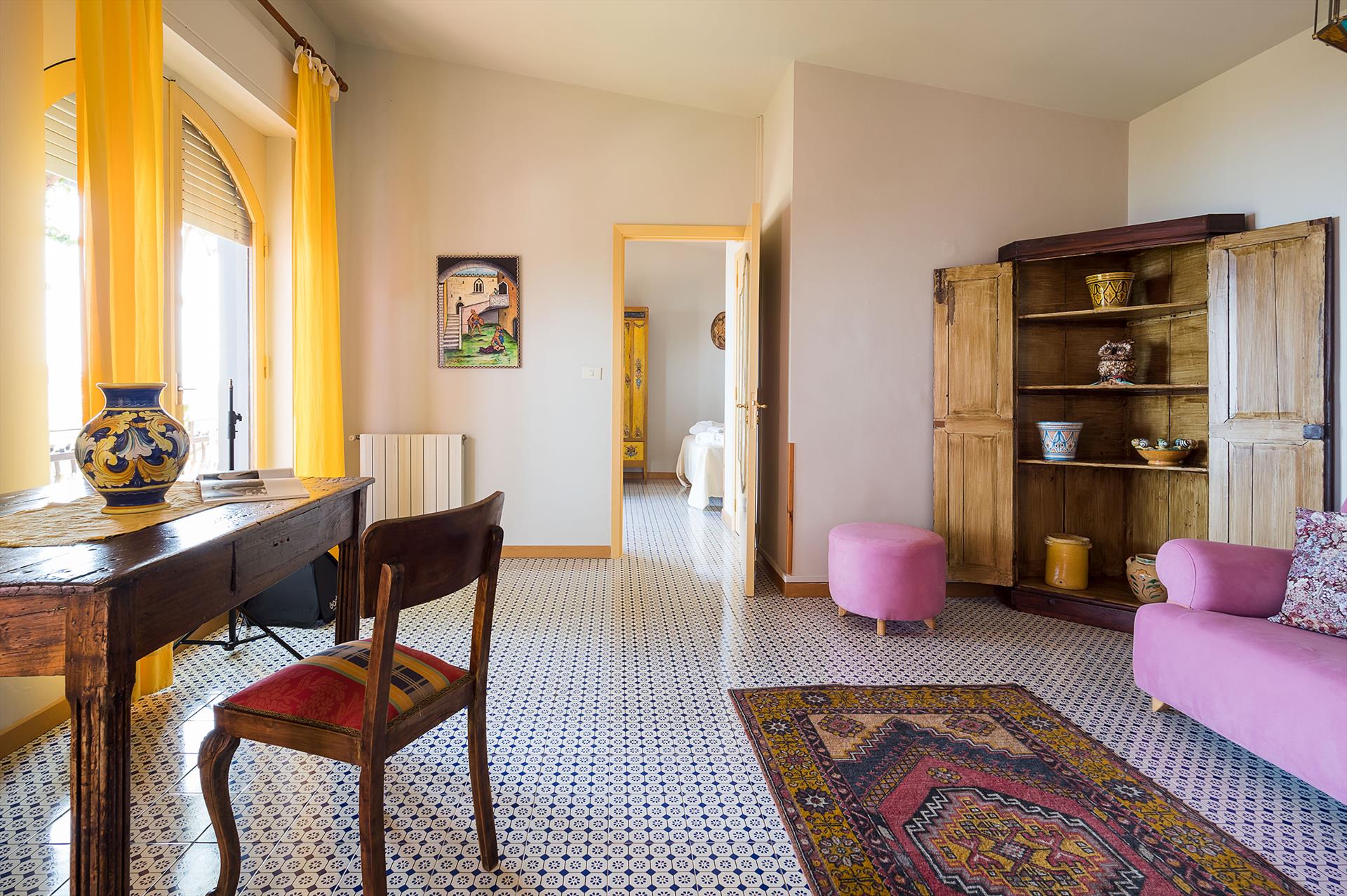 La Boheme is a prestigious villa, with private pool (on request heatable in certain periods) and Mediterranean garden, located in the town of Taormina. The villa is set into sloping ground at the upper end of Taormina and is not far from the popular Corso Umberto with its splendid boutiques, restaurants and cafes, as well as the famous Greek Theatre and other popular sights. La Boheme overlooks the garden and pool area, ideal for spending most hours of the day outside, reading, swimming or 'dining al fresco'. Encompassing 2 floors, La Boheme has been elegantly furnished, featuring beautiful Sicilyn décor, with ancient ceramics and antique furniture. The villa comes with Wi-Fi, washing machine, Sat TV, dishwasher, air conditioning (all rooms) and central heating. Easy to reach by cable car, or a short drive, are the beautiful beaches of Mazzarò and Isola Bella. The city of Catania, the Alcantara Gorges, Mount Etna and the villages of the Cyclops Riviera, can all easily be reached by car.